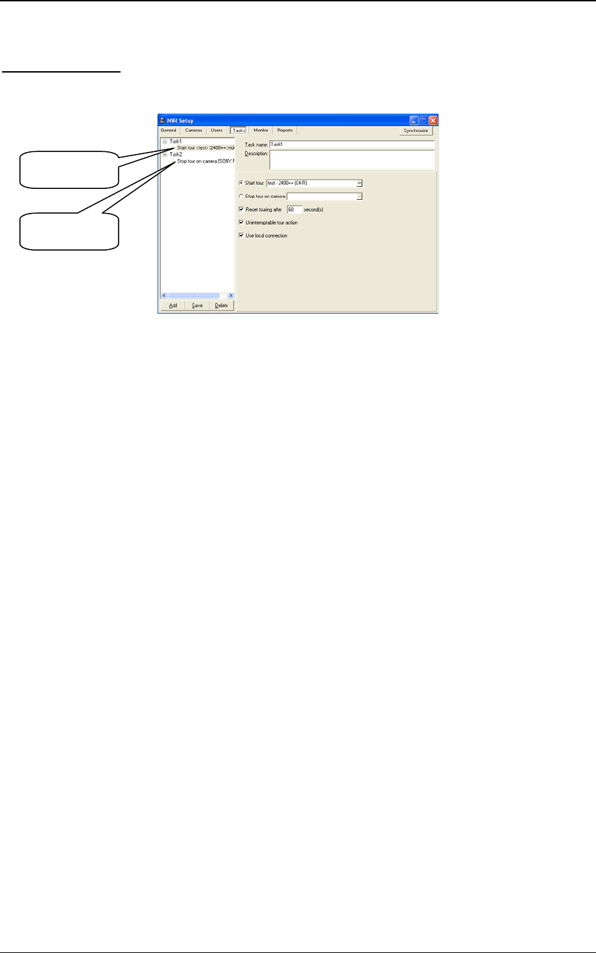 • Start Tour: when selected, a camera and a tour must also be selected from the pull down menu