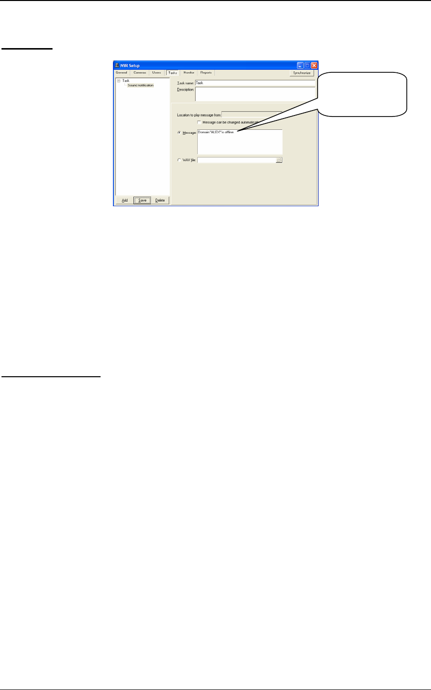 • Message: Message that can be played when required (e.g. Domain “ALEX” is offline).