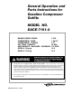 GENERAL OPERATION AND PARTS FOR GASOLINE COMPRESSOR OUTFITS MODEL NO. DACE-7161-2 Call our Toll Free Number 1-800-888-2468, Ext 2, then 1, to obtain the location of the nearest Authorized Service Center for ordering repair parts and for warranty repairs. When ordering repair parts from your local Authorized Service Center, always give the following information: • Model number of your product • Part number and description of the item you wish to purchase WARRANTY Attach Sales Receipt Here.