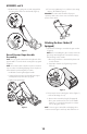 SERVICIO Y MANTENIMIENTO (continuación) 7. Lubrique el cigüeñal del motor y la superficie interna Cuidado de las Cuchillas del adaptador de la cuchilla con aceite ligero. (recuadro de la (Figura 16 inset). a. Deslice el adaptador de la cuchilla (d) sobre el cigüeñal del motor. b. Instale la cuchilla en el adaptador con el lado marcado “Grass Side” (lado del césped) (o con el número de parte) hacia el suelo cuando la cortadora de césped está en posición de funcionamiento. c.