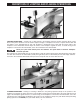 4. To adjust belt tension, turn nuts (F) and (G) Fig. 34, to move motor plate (H) up or down until there is approximately 1/2 inch deflection at the center span of the belts, as explained in STEP 3. G F H Fig. 34 ADJUSTING SPRING TENSION OF CUTTERHEAD GUARD A The cutterhead guard (A) Fig. 35, completely covers the cutterhead.