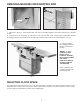 REMOVING MACHINE FROM SHIPPING SKID B C A Fig. 5 Fig. 6 1. Open door (A) Fig. 5, under infeed table and remove mounting hardware that fastens infeed end of machine to skid 2. Remove three screws (B) Fig. 6, and remove cover (C) from dust chute located under outfeed table. Remove mounting hardware located inside cover (C) that fastens outfeed end of machine to skid and replace cover (C). 3. Remove machine from shipping skid and position in permanent location.