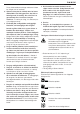 FRANÇAIS • Pendant le travail, tenez l’outil de telle sorte qu’il ne puisse provoquer aucune blessure à la tête ou sur une autre partie du corps si des sursauts surviennent en raison d’une coupure d’alimentation électrique ou des surfaces dures dans la pièce à ouvrer. • Ne faites jamais travailler un outil de clouage d’éléments de fixation dans le vide. • Dans la zone de travail, amenez l’outil sur la zone de travail en le tenant uniquement par la poignée, et jamais avec la gâchette enclenchée.