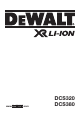 E NG L I S H CORDLESS RECIPROCATING SAWS DCS320, DCS380 Congratulations! You have chosen a DeWALT tool. Years of experience, thorough product development and innovation make DeWALT one of the most reliable partners for professional power tool users. Technical Data DCS320 DCS380 Voltage VDC 14.4 18 Type 1 1 Battery Type Li-Ion Li-Ion Max. power output W 390 560 No-load speed min-1 2400 2950 Stroke length mm 28.6 28.