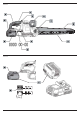 Це може призвести до травмування або Транспортування: Транспортування з надітим пошкодження інструменту. 1 Курковий пусковий вимикач ковпачком. Питома потужність дорівнює 3 х 36 год (3 акумулятора, кожен потужністю 36 Втч). 2 Кнопка захисту від ненавмисного пуску Тип акумулятора 3 Дані акумуляторні пилки «Алігатор» працюють від 4 акумуляторів напругою 54 В. Задня рукоятка Передня рукоятка 5 Пильні полотна Можуть використовуватися акумулятори: DCB546. Більш детальну інформацію див.