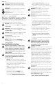 Français CODE CAUSE PROBABLE 8 Soupape à essence fermée. 9 Le tube de pulvérisation n’est pas réglé sur haute pression. 10 Faible approvisionnement en eau. 11 12 13 Fuite au raccord du tuyau haute pression. Buse obstruée. Grille du filtre d’eau obstruée. 14 Présence d’air dans le tuyau. 15 16 Le levier de l’étrangleur est en position CHOKE (étranglement). Le tuyau haute pression est trop long. 17 Tube de pulvérisation n’est pas réglé sur basse pression.