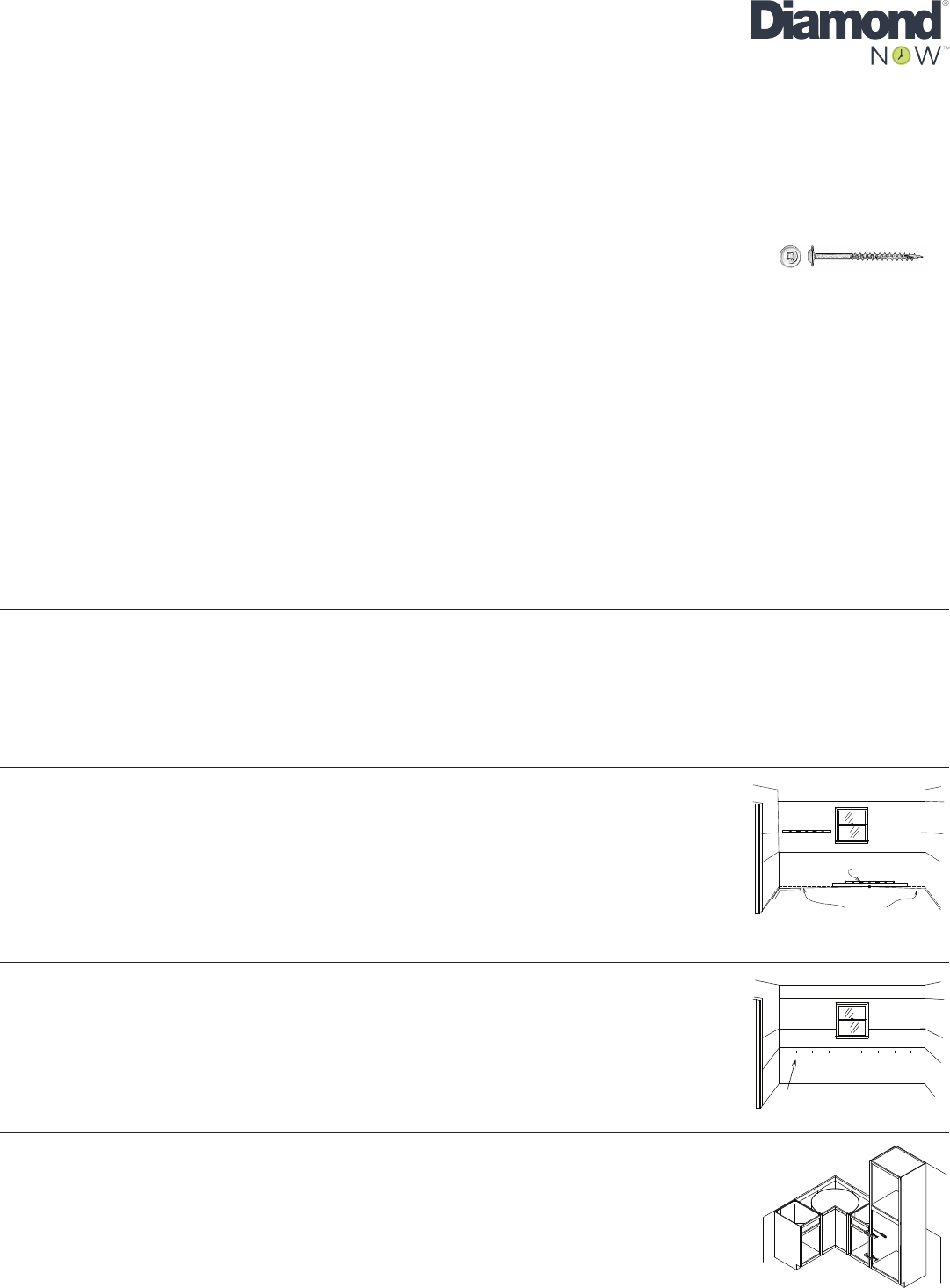CAUTION: Never use nails to mount cabinets. The use of nails may void your factory warranty, written or implied.