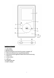 Location of Controls 1. LCD display 2. MENU button 4. Play/Pause/press and hold for power on/power off 5. Previous track/previous song/fast backward 6. Next track/next song/fast forward Next track/next song 7. volume up 8. volume down 9. USB port 10. Earphones jack 11.