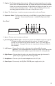 . Display - The Display provides information for different functions depending on the mode that is active. In Performance mode, the Display will show the currently selected Preset name and numeric location. In Edit mode, the Display will show the name and value of the selected parameter. In Tuner mode, the Display will show the note being played and whether the note is sharp, flat, or in tune. 8. Store - The Store button is used to save your custom edits to the user Presets. 9.