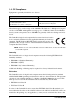 1.4 CE Compliance Equipment is generally divided into two classes. CLASS A CLASS B Digital equipment meant for light industrial use Digital equipment meant for home use Less restrictive emissions requirement: less than 40 dB µV/m at 10 m (40 dB relative to 1 µV/m) or 300 µV/m More restrictive emissions requirement: 30 dB µV/m at 10 m or 100 µV/m These limits apply over the range of 30–230 MHz. The limits are 7 dB higher for frequencies above 230 MHz.