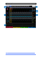 1 Selected channel – Displays the name, type and number of the currently selected channel. Click to edit channel name. A name can have up to 8 characters, however only the first 6 characters will be displayed in the fader strip display. To store a name for instant access later on, click a ‘quick name’ box and click Store. 2 Active Mix – Displays the name, colour, type and number of the currently active Mix. If a CG Spill is active, the Mix name is surrounded by a red square.