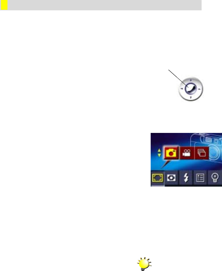 Camera Mode Settings are used to change shooting mode, resolution, flash setting, LCD