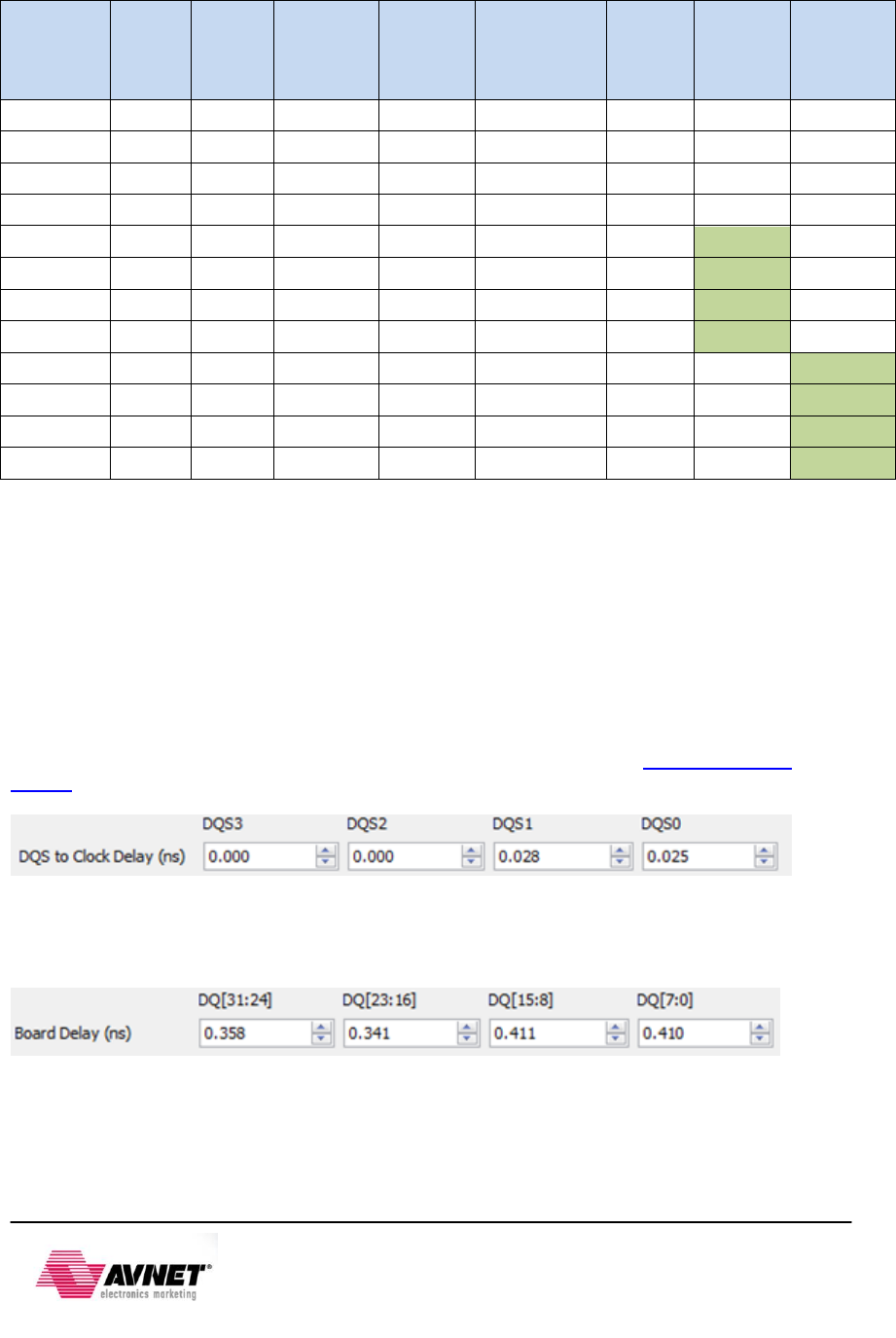 The Board Delay fields in the PS7 DDR Configuration window should be populated using the