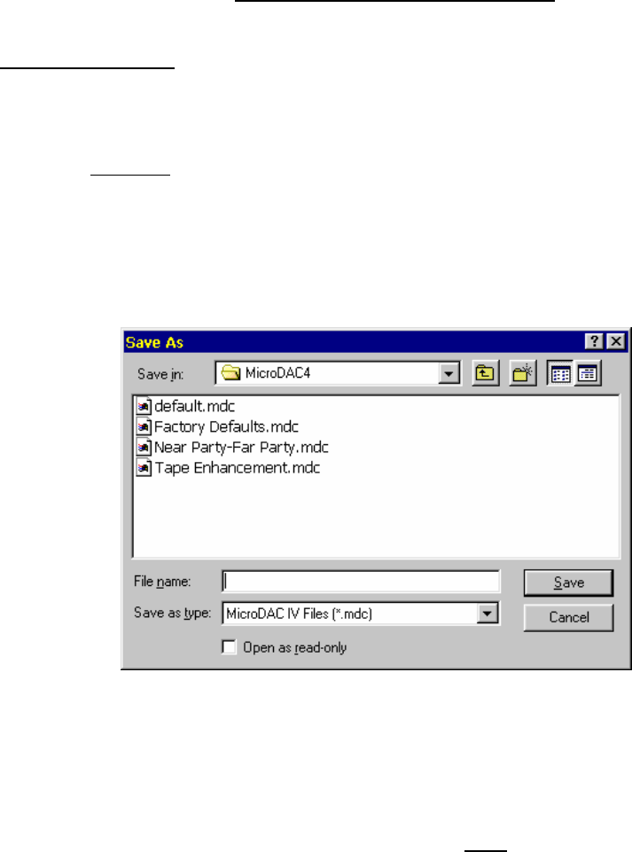 current screen settings are stored in this file. The next time the MicroDAC IV software is run, these