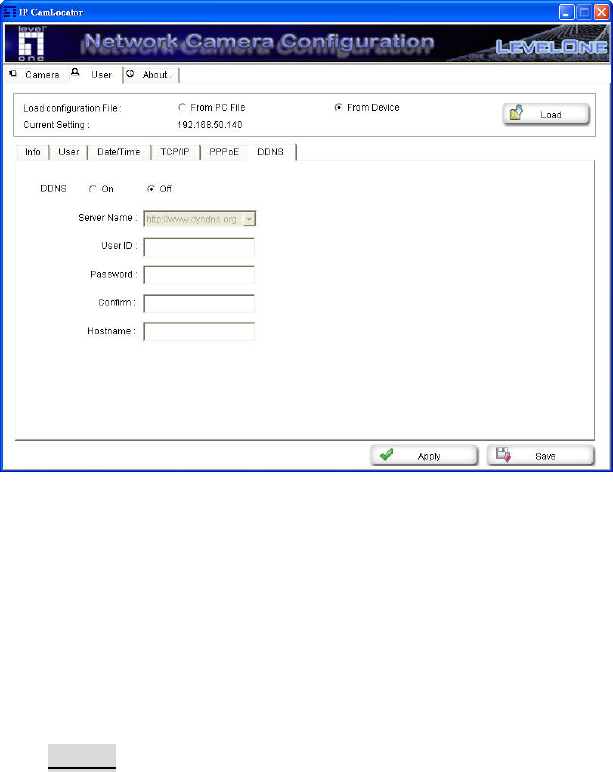 User ID:Enter the user ID for authentication necessary for DDNS connections. Type it up to 64 characters.