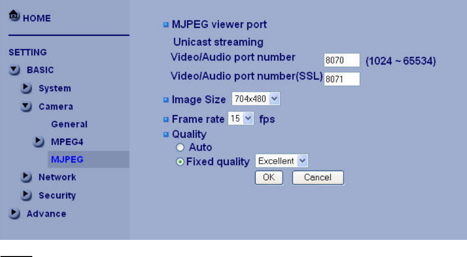 • MJPEG settings are unavailable if the RTSP mode is ON, which means the MJPEG streaming is closed.