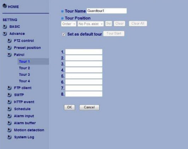 There are four patrol tours to set for composing different preset positions. Each one lists up