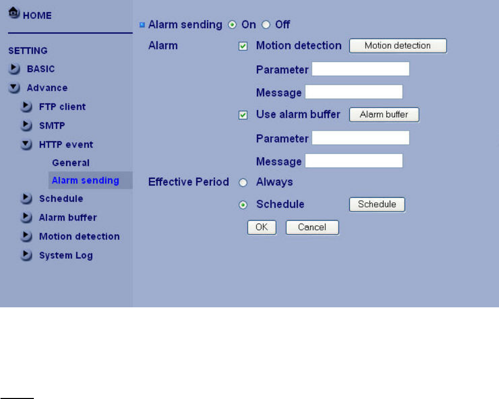 Alarm sending:Select On to set to send mail with connection to the alarm detection.
