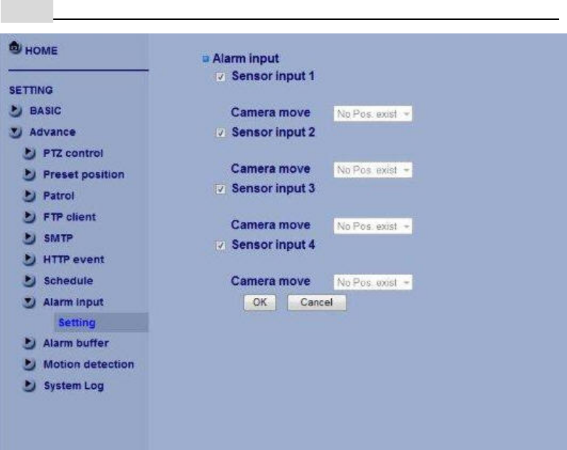 the camera I/O port. Select position for moving toward preset position when sensor input 4 be