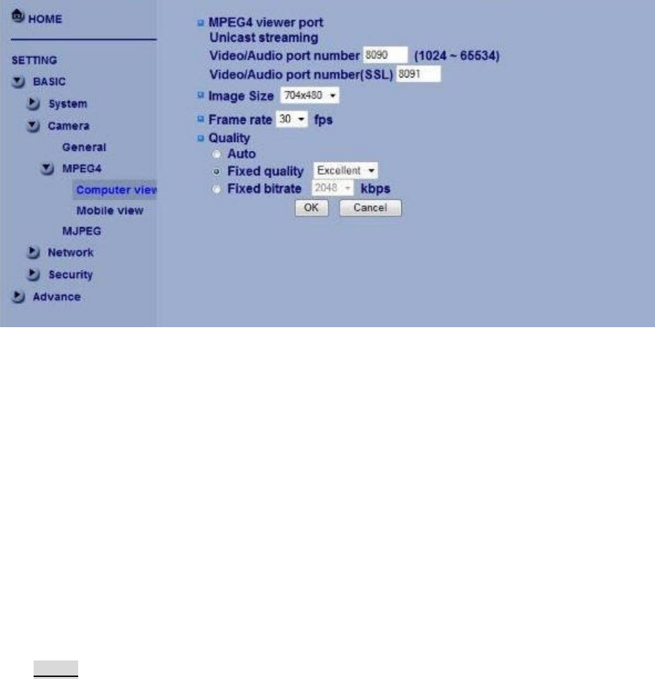 Fixed Bitrate:Set the bit rate of MPEG4 image transmission for a line. Selectable values are 64, 128, 256,
