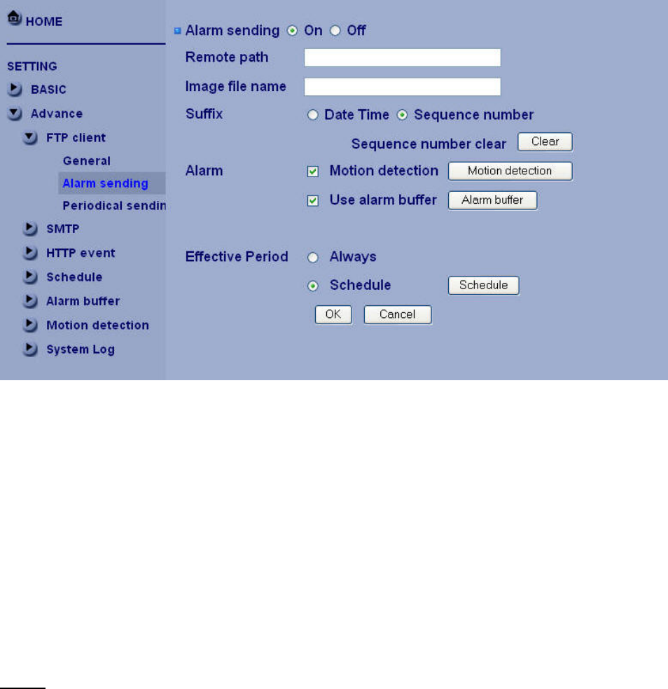 to FTP server linked with the alarm detection.