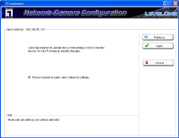 Choose “Reboot system to apply new (network) se