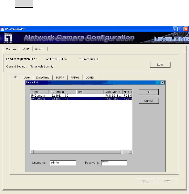 From Device:Click it and press Load to select the specific device in the network. Type the Username and