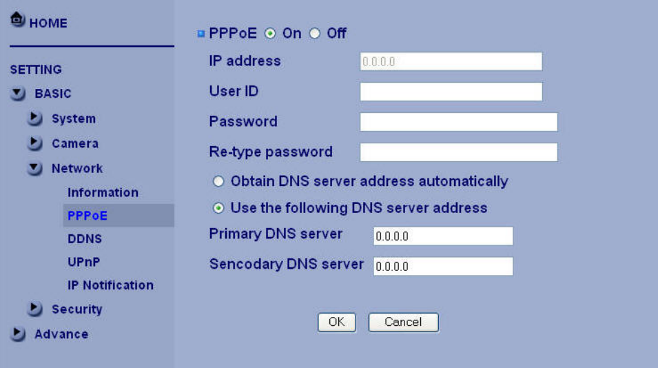 User ID:Enter the user ID for authentication necessary for PPPoE connections. Type it up to 64 characters.