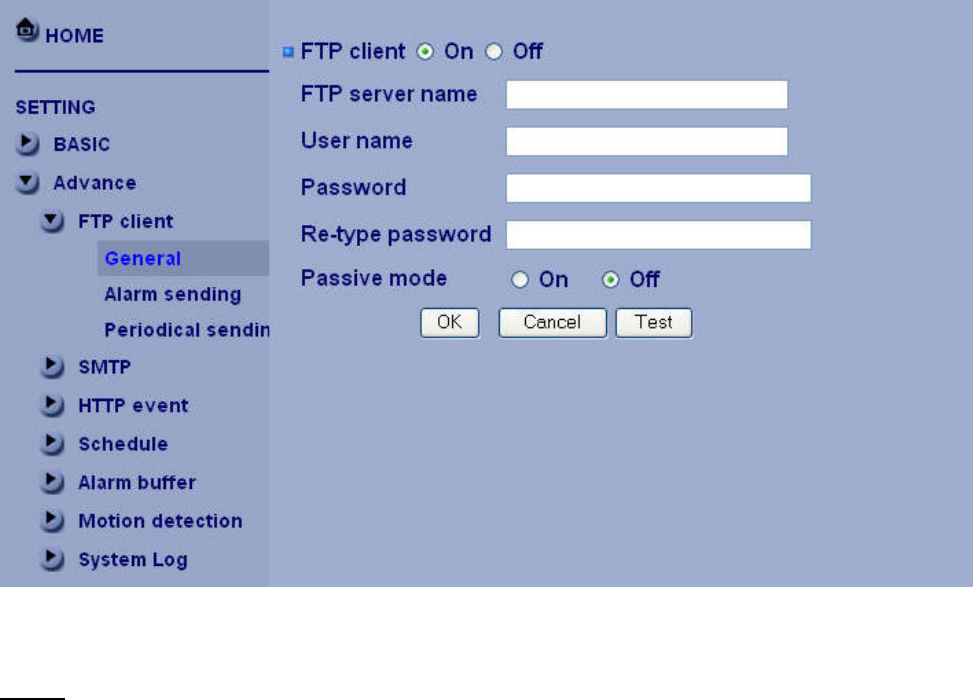 input or with the built-in motion detection function to FTP server. FTP client setting menu is composed of