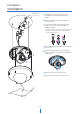 Installa�on - Installa�on Using Mount Bilt & Nut 11 4 Insert the mount bolts into template holes a�er connec�ng the cable. 5 Fix the bo�om case by �ghtening mount nuts to mount bolts on the ceiling panel. 6 To achieve desired view direc�on and orienta�on, rotate 3-axis gimbal. To fix the se�ng, �ghten the �lt stopper screw. 7 A�ach the dome cover to the bo�om case. 8 Detach the protec�on film from the dome cover.