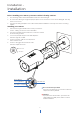 Installation - Installation Before installing your camera, you must read the following cautions. 1. The mounting surface must withstand five times the camera weight. 2. Do not let the cables get caught in improper places or the electric line cover can be damaged. This may cause a short or fire. 3. Using the mounting template or the camera itself, mark and drill the necessary holes in the mounting surface. Installing your camera: 1. Pass wires through and make all necessary connections.