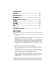 Table of Contents: Overview . . . . . . . . . . . . . . . . Front Panel . . . . . . . . . . . . . . Rear Panel . . . . . . . . . . . . . . Setup Connections . . . . . . . . Powering Up . . . . . . . . . . . . . Footswitch Operation . . . . . Models and Effects Functions Amplifier . . . . . . . . . . . . . . . Cabinet . . . . . . . . . . . . . . . . . Compressor . . . . . . . . . . . . . Modulation . . . . . . . . . . . . . . Delay/Reverb . . . . . . . . . . . . Gate . . . . . . . . . . . . . . . . . . .