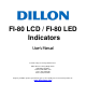 FI-80 LCD / FI-80 LED Indicators User’s Manual Contents subject to change without notice. Dillon division of Avery Weigh-Tronix 1000 Armstrong Drive Fairmont, MN 56031 USA Sales (507) 238-8796 Service (507) 238-4461 Register your Dillon product, get manuals and see other quality force measurement products at: www.dillonforce.