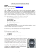 TROUBLESHOOTING Behavior Problem Action No lights on front panel Power switch off Turn on power switch on rear of stand Power not connected Insure cord is secure at both ends and has supply power Power setting Verify supply power and power module setting Limit switch Attempt movement in other direction. Release limit switch. Emergency stop Release button.