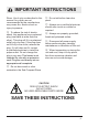 IMPORTANT INSTRUCTIONS When using electrical appliances, basic precautions should always be followed to reduce the risk of fire, electric shock, and injury to persons, including the following: ① Read all instructions before using the Sub-Compact Stove. ② The heater is hot when in use. To avoid burns, do not let bare skin touch hot surfaces. The trim around the heater outlet becomes hot during heater operation.
