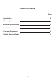 Table of Contents Page Introduction 2 Operating Instructions 4 Electrical Specifications 5 Installation Instructions 6 Care and Maintenance 9 Trouble Shooting Guide 10 -1-