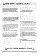 Table of Contents Welcome .............................................................3 IMPORTANT INSTRUCTIONS............................ 4 Specifications ......................................................6 Installation ...........................................................7 Operation...........................................................10 Maintenance ......................................................14 Technical Support ..............................................14 Electrical ......