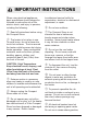 Instructions ImportantES Lorsque vous utilisez un appareil électrique, il est important de toujours prendre des mesures de sécurité de base pour réduire les risques d’incendie, de chocs électriques ou de blessures, notamment : ① Lisez toutes les instructions avant de vous servir du poêle compact. ② L’appareil devient chaud lorsqu’il est en marche. Pour éviter les brûlures, ne touchez pas les surfaces chaudes. La bordure autour de la bouche de chaleur devient chaude lorsque les éléments chauffent.