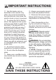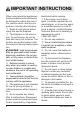 IMPORTANT INSTRUCTIONS ⑮ Use this heater only as described in this manual. Any other use not recommended by the manufacturer may cause fire, electric shock or injury to persons. ⑯ To reduce the risk of electric shock, this appliance has a polarized plug (one blade is wider than the other). This plug will fit in a polarized outlet only one way. If the plug does not fit fully in the outlet, reverse the plug. If it still does not fit, contact a qualified electrician to install the proper outlet.