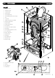 2.0 BOILER LAYOUT 2.1 KEY 1. Expansion Vessel 2. Automatic Air Vent 3. Circulation Pump 4. Drain Off Point 5. Pressure Relief Valve 6. Central Heating System Pressure Gauge 7. PCB 8. Control Box 9. Flexible condensate pipe assembly 22 21 1 26 27 10. Flame Sensing Electrode 18 11. Spark Electrode 12. Primary Heat Exchanger 13. Fan Assembly 10 14. Gas Valve & Swirl Plate Assembly 15. Reset Button 17 16. Central Heating Temperature Control 17.