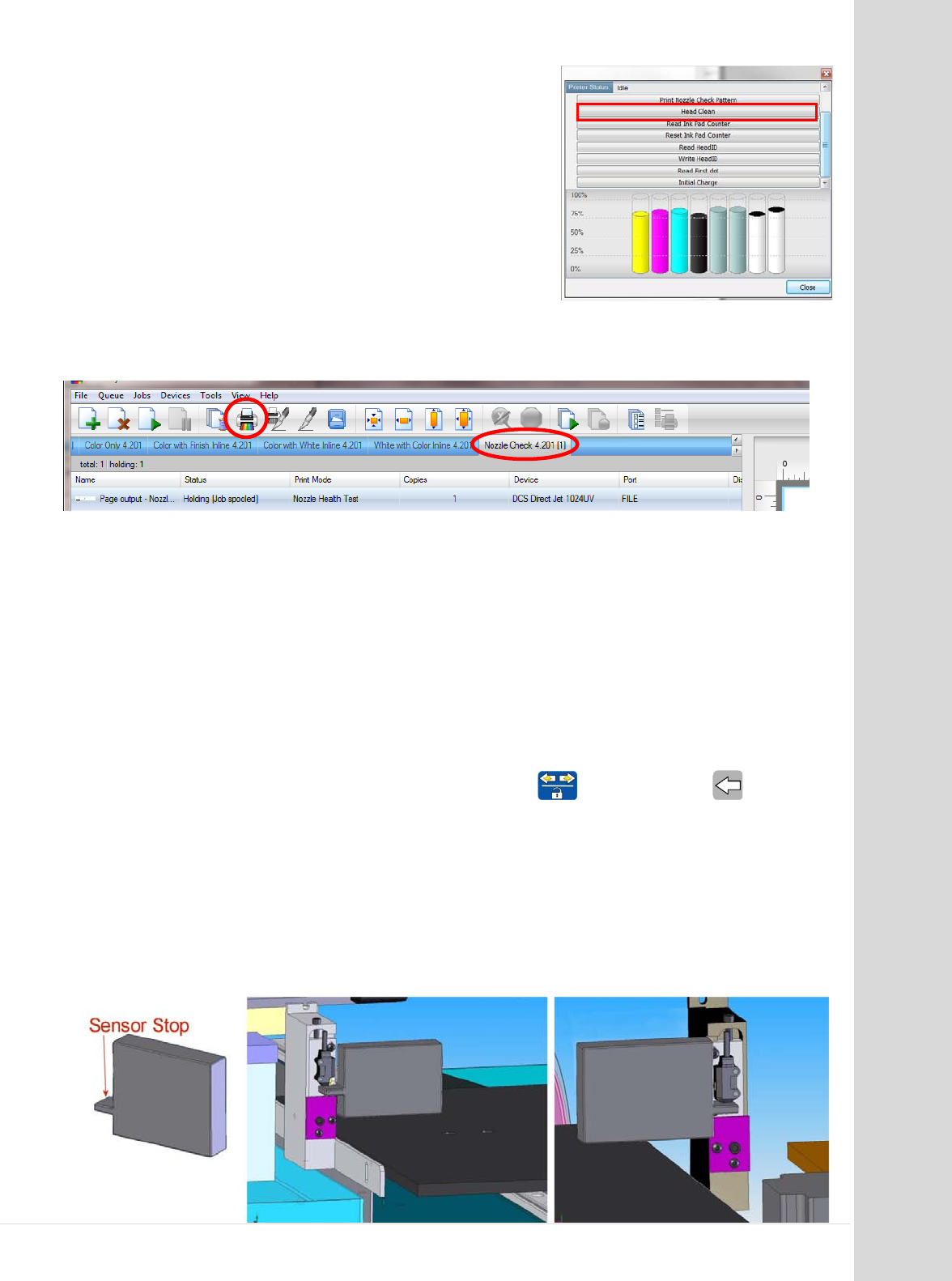Close the Device Properties dialogue box, and go to your Nozzle Check queue. Click on the