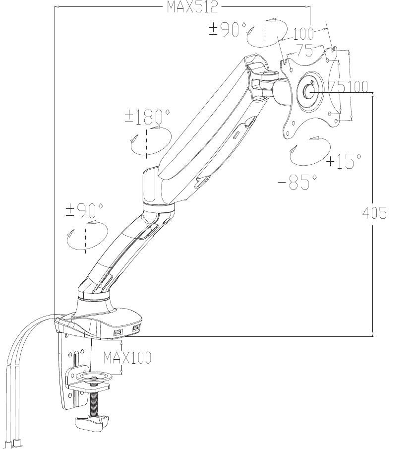 Deluxe Gas Spring Desk Monitor Mounts Fits 10 in. to 27 in. with USB Cable Up to 22 lbs.
