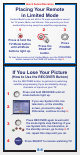 Quick Setup/Operation Placing Your Remote in Limited Mode Limited Mode locks out all the TV mode operations except for TV power, Mute, and Volume. This prevents you from accidentally tuning away from satellite programming. 1 2 3 PAGE Press & hold the TV Mode button until all Mode buttons light up. Press the PAGE UP button. Press POUND. To take the remote out of Limited Mode, use the PAGE DOWN button instead of the PAGE UP button in step 2.