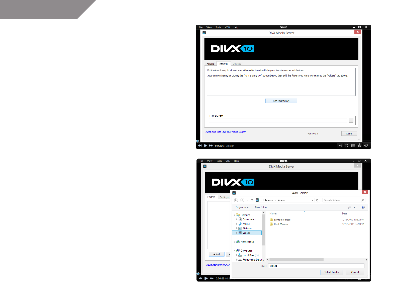 MOVIES folder. This folder is created automatically when DivX 10 is