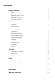 Contents Using This Manual 2 Legend 2 Read Before the First Flight 2 Download the Tello App 2 Units of Measurement 2 Product Profile 4 Introduction 4 Aircraft Diagram Aircraft 4 5 Flight Modes 5 Aircraft Status Indicator 6 Vision Positioning System 7 Intelligent Flight Modes 8 Propellers 12 Propeller Guards 13 Flight Battery 14 Camera 15 Tello App 16 Connecting to the Aircraft 16 Camera View 16 Controlling the Aircraft 17 Flight 20 Flight Environment