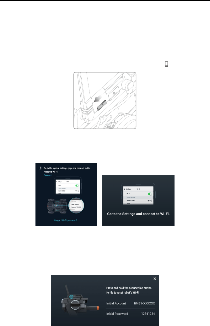 (2). Run the RoboMaster app, go to Wi-Fi settings on the mobile device, select the Wi-Fi name