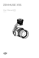 Contents Read Before the First Flight 2 Legends 2 Getting more information 2 Introduction 4 Overview 5 Read the information below before setting up your Zenmuse X5S 5 2 Using this manual Product Profile 4 4 In the Box Getting Started 5 Supported Devices 5 Supported Lenses for the DJI Inspire 2 5 Required Lens Accessories 6 7 Installing the Camera Lens 8 Mounting the Zenmuse X5S to the aircraft Mounting the Zenmuse X5S to the Inspire 2 8 Mechanical Range 9 9 Using the Remote