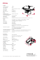 Anhang Fluggerät Gewicht (inkl. Akku) Max. Steiggeschw. Max. Sinkgeschw. Max. Geschw. Max. Flughöhe Max. Flugzeit Betriebstemperatur GPS ● Gimbal Kontrollierter Bereich ● Optische Positionsbestimmung Geschwindigkeitsbereich Höhenbereich Betriebsbereich Betriebsumgebung ● Kamera Sensor Linse ISO-Bereich Belichtungszeit Max. Bildgröße Standfoto-Modi ● Nickwinkel: -90 bis +30° 185 mm 1280 g 5 m/s 3 m/s 16 m/s (ATTI-Modus, kein Wind) 6000 m ca. 23 Minuten 0 bis 40 °C GPS/GLONASS 28 9.