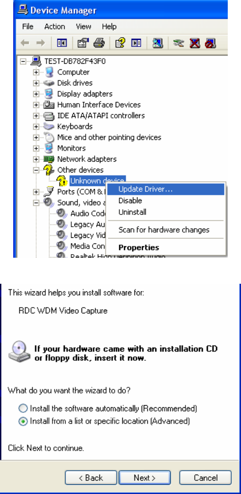 1. Choose update by clicking the 2nd selection to install the driver at specific location.