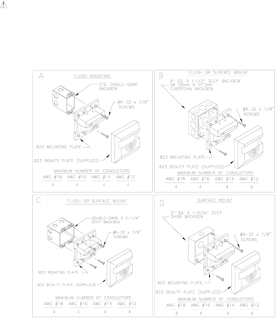 largest backbox option shown and the use of approved stranded field wires, whenever possible, to provide additional wiring room for